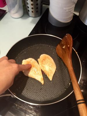 两面煎,差不多就可以按压一下鸡肉,硬的就是熟了,用手触感更确实,不过要注意别烫着手了