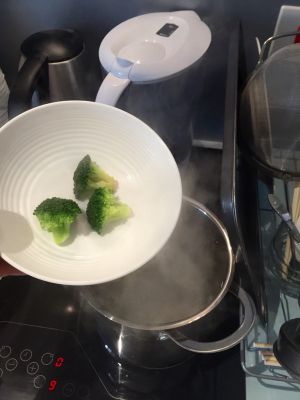 开水煮蔬菜,同时用锡纸包裹番薯放到烤箱烤200度40分钟