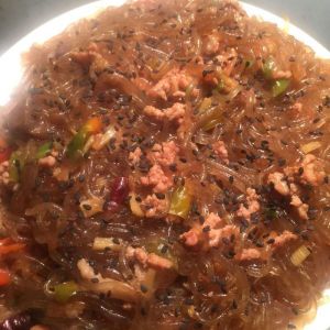 装盘后洒上黑芝麻即可,好吃快速的蚂蚁上树就完成了