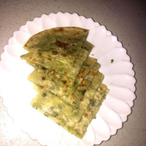 将擀好成饼的饺子皮放入加油的热锅中慢煎