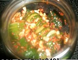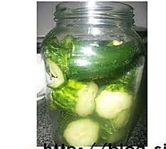 将切好的黄瓜装入洗好的玻璃瓶里,装时黄瓜因为切的时候偷懒韧性不够,所以折断了,