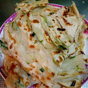 擀成薄饼 电饼铛或者不粘锅中加油,开始烙饼喽