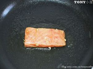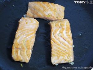 倒入一点就可以,因为三文鱼本身含有脂肪。