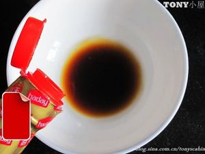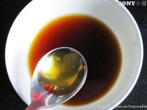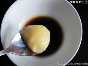 准备一只小碗,先把另外半个的柠檬汁水挤在碗里,然后加入生抽和一点水。