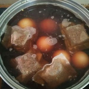 放入配料加清水煮开,放入鸡蛋同煮,泡上一夜更好吃