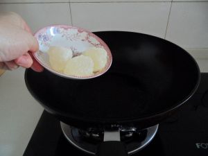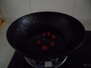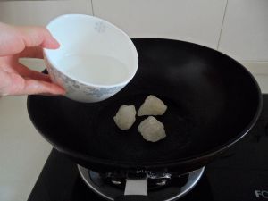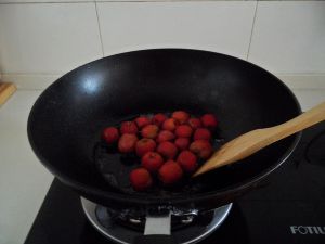12.往锅里倒入适量冷水,也可放入几颗山楂,开火熬煮成山楂糖水,这样锅也洗好了,还有一杯饮料,岂不是一举两得。