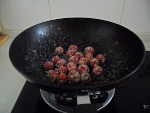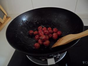 9.使山楂表面均匀的被糖汁包裹,继续搅拌。