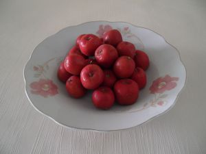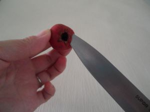 2.用小刀把山楂果蒂摘掉和另一端的凹陷处杂质挖干净。