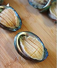 将鲍鱼肉在流水下用小刷子刷洗干净,切深入厚度三分之二处的十字花刀,然后,放回洗净的鲍鱼壳中