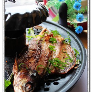 把腌制入味的鱼摆在烤盘上,不用在鱼身上抹油,因为烤的过程中鱼会出油。