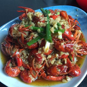 下锅先炒蒜泥,加盐,放入小龙虾翻炒,加蚝油,鸡汁,啤酒闷煮后出锅即可!