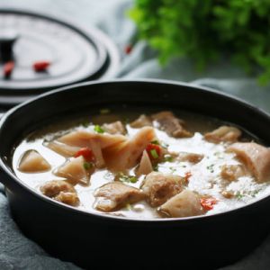 大火煲好后加入适量的枸杞和浓汤宝(其实半块更合适),中火再煲30分钟