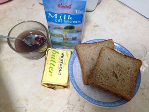 黄油谷物吐司配红豆薏米牛奶羹