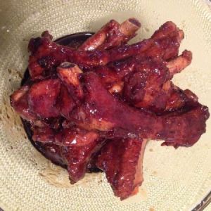等汤汁收干后,加入适量食盐,盛出排骨。