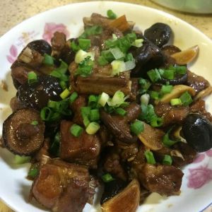 先将排骨焯水一分钟去掉杂质,再用高压锅压10分钟(为了节约时间)。压好后将排骨倒入炒锅内,放入蒜瓣。