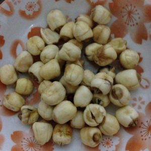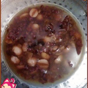 然后放入莲子,跟红豆一样泡几个小时,去莲子心。红豆莲子一起煲沸之后熄火,闷半个小时。