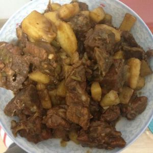 盖上锅盖小火焖十分钟后加入土豆块,喜欢绵软口感所以我多炖了一会,大概炖了十五分钟土豆,好啦,大火收汁加入适量糖和盐就可以装盘啦