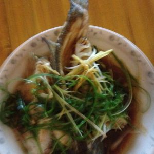 取一小碗加些酱油,滴3滴白酒淋在鱼上面,在取一锅加油烧热淋在上面,美味就呈献出来了!