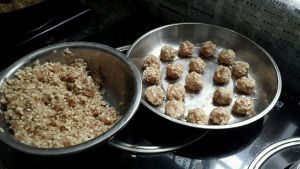 把腌制好的材料捏成圆,你想要多大个丸子就捏多大