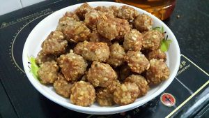 做成的丸子。趁热吃香啊。怕腻的也可以沾番茄酱吃。