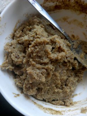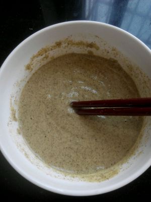 我这里是市场现磨的绿豆面。加水搅拌好。