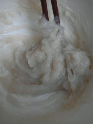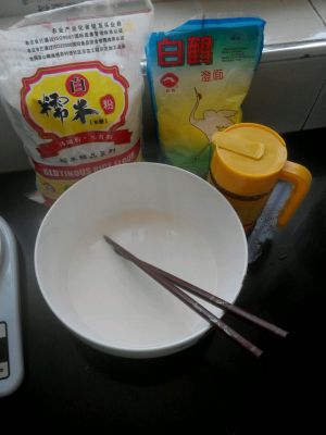 澄面和糯米粉加白糖,玉米油和少许蜂蜜搅拌均匀。这里注意水不能太少,不然后面的冰皮容易干和开裂。。