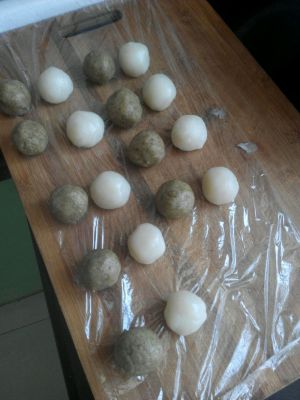 把刚才做好放温的饼皮搓成大小等量的球球儿。。