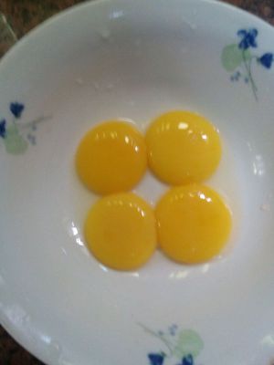 取蛋黄,加糖搅拌至发白