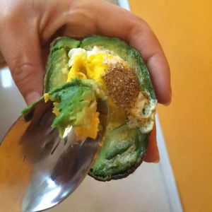 第2部:把牛油果那个洞掏大点,打个鸡蛋进去,蛋清适当控制,不然流哪里都是