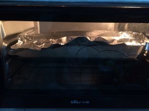 烤约20分钟左右上色后,下火调至150度,盖上锡纸