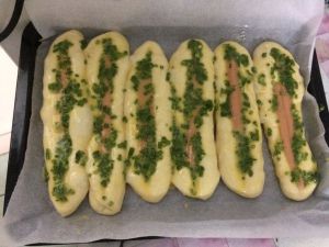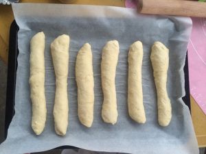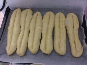 相同的方法卷好所有的面团并摆放整齐烤盘