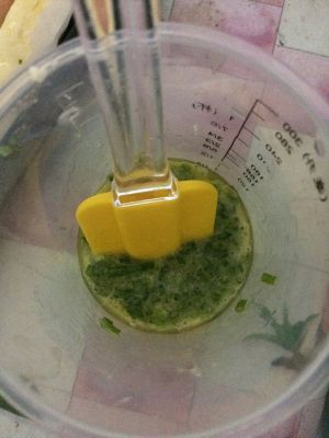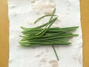 在二次发酵期间准备葱油。取适量葱,只要绿色部分,洗净并用厨房用纸吸干水份,并切成葱花备用