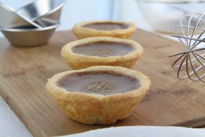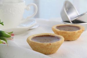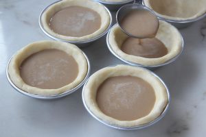 分别放入蛋挞模具中,用大拇指压匀(这和普通的蛋挞皮不一样,不用擀多次起酥,这个吃起来口感有点像饼干的酥,味道非常好的)