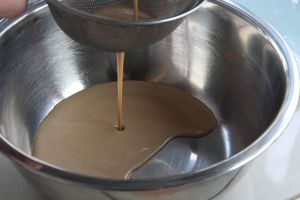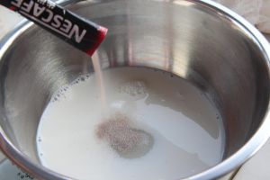 再来制作塔水部分:牛奶加糖再加咖啡粉拌匀