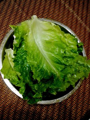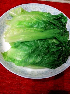锅里烧开热水,放几滴油,(颜色更漂亮)生菜下锅焯水10几秒,装盘备用