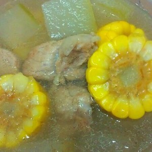 沥干水份重新放入锅内大火烧开加入姜片和花椒,放入红枣,倒入玉米和冬瓜烧开后调成文火,