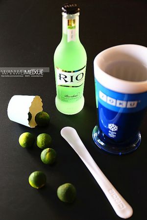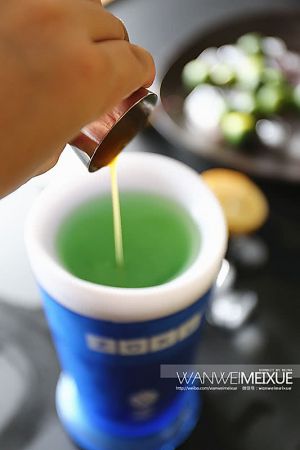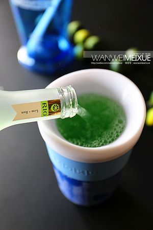 接着倒入柠檬浓缩果汁,把杯胆放入外杯中;