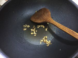 黑椒汁制作:锅里热点油加入泡发好的香菇(香菇切成小丁)爆香