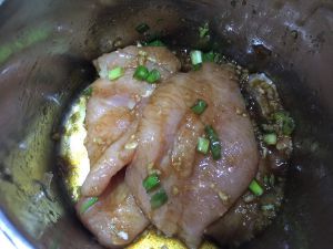 猪扒洗净后加入适量的盐、胡椒粉、黑椒粉、蚝油、生抽、香油、鸡粉、白砂糖、生粉腌制半天