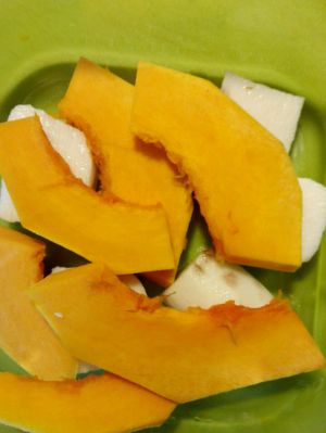 芍药 金瓜或者南瓜切片或者条 铺满碗底