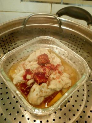 然后撒上熟芝麻 放上酱豆腐 撒点盐和酱豆腐汁在汤里 滴上点香油 不滴更减肥 再蒸10到15分钟