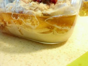 出锅可以吃了 肉肉也有主食也有 特地找了和玻璃碗 大家可以看到下面滋补的果冻 是山药和肉肉的冻冻 很好吃