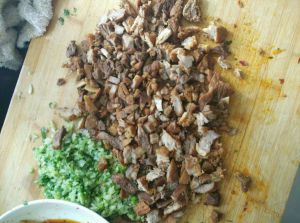 刚才的汁不要扔,煮点蘑菇切成碎块和所有食材一起搅拌