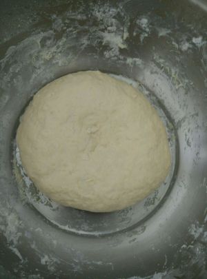 适量面粉放点酵母粉打一个鸡蛋,搅拌后裹成球盖好闷着