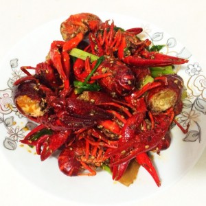 转大火放小龙虾翻炒。炒个两分钟左右,加料酒和盐、生抽。火锅底料有盐,所以盐要适量。加点开水盖锅盖焖十分钟。