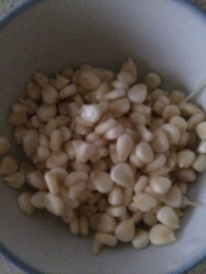 玉米剥粒,豆浆机量杯量取2杯,洗净。