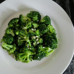 炒锅倒入几滴橄榄油,放入葱蒜翻炒两下倒入西兰花。时间依个人喜好,喜欢脆一点就少炒几下,软一点就多几下。出锅,装盘。。