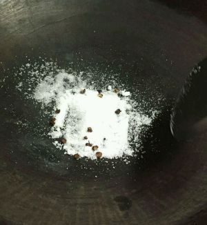 炒盐。小火烧干锅,放盐,炒热放花椒。注意全程小火,炒一至两分钟。