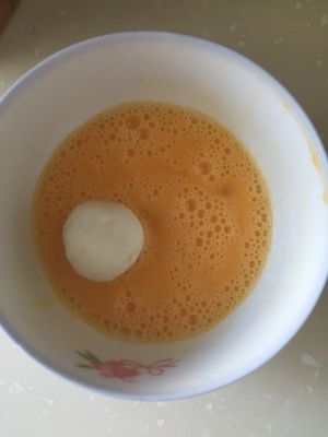 放入打散的蛋液里滚几圈