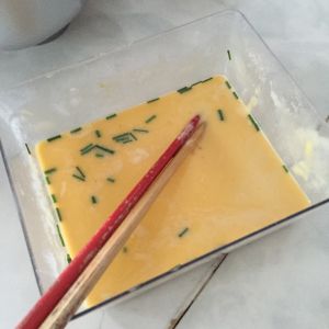 香葱切小段,与面粉、奶粉、鸡蛋、水、盐混合搅拌成面糊。